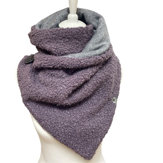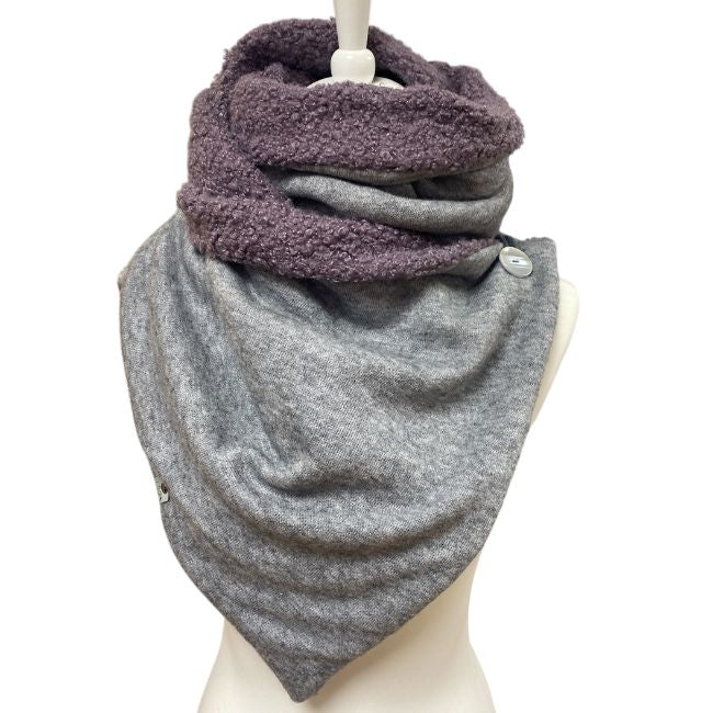Dieser Wickelschal hat die Optik eines Dreiecktuchs. Er ist herrlich weich und kuschelig und kann von beiden Seiten getragen werden.