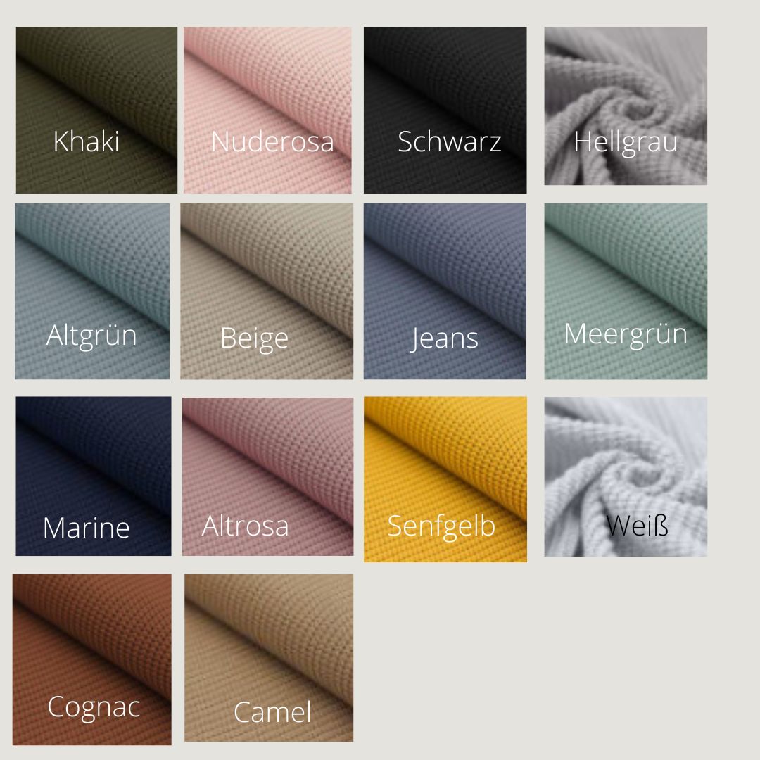 Unsere Grobstrick Fleece Stirnbänder gibt es in 14 verschiedenen Farben! Die Breite der Stirnbänder liegt bei 10 cm. Wenn Du es gerne schmaler oder breiter möchtest, gib dies gerne beim Kauf mit an!